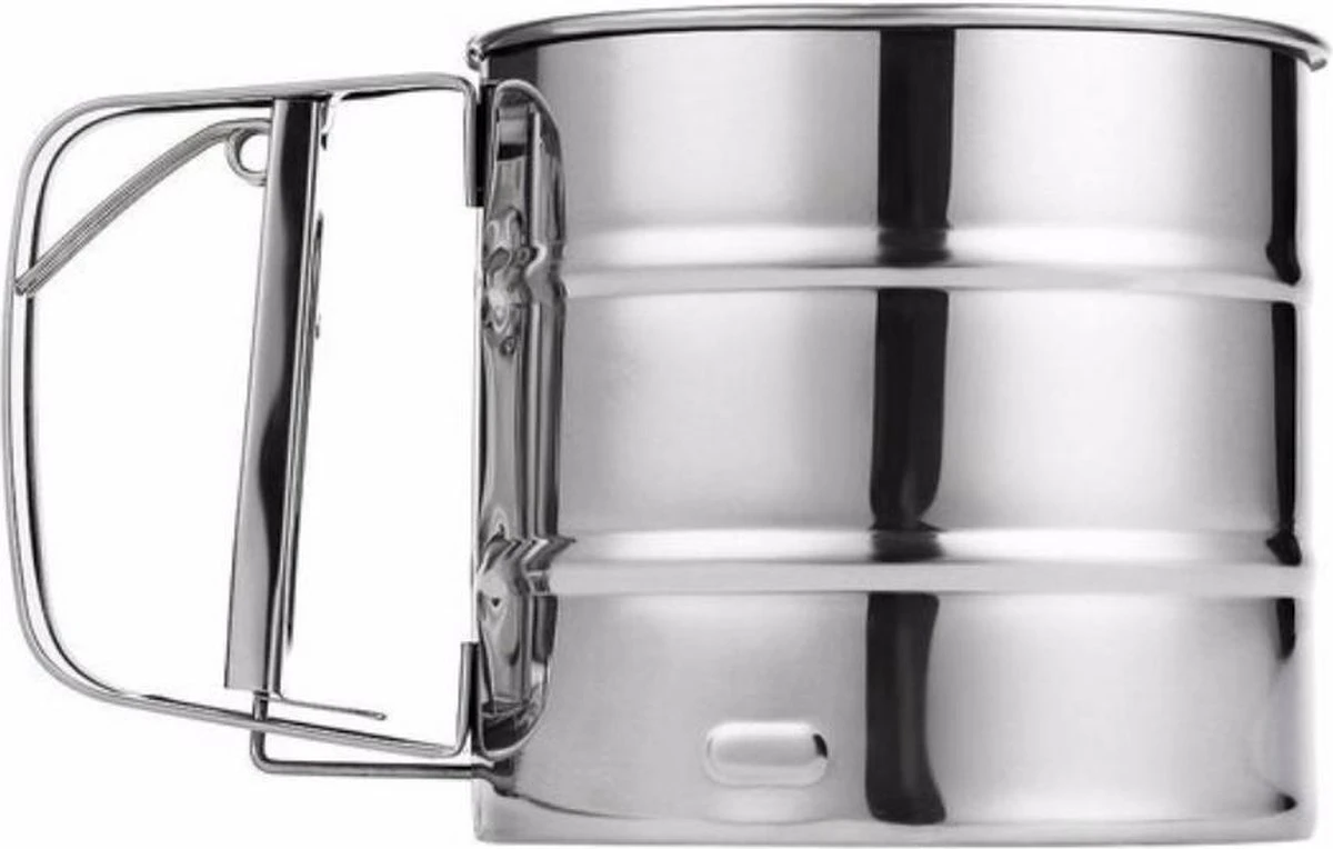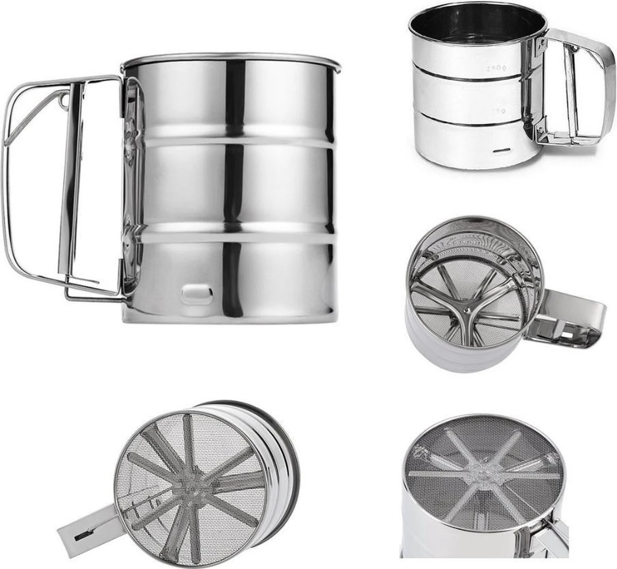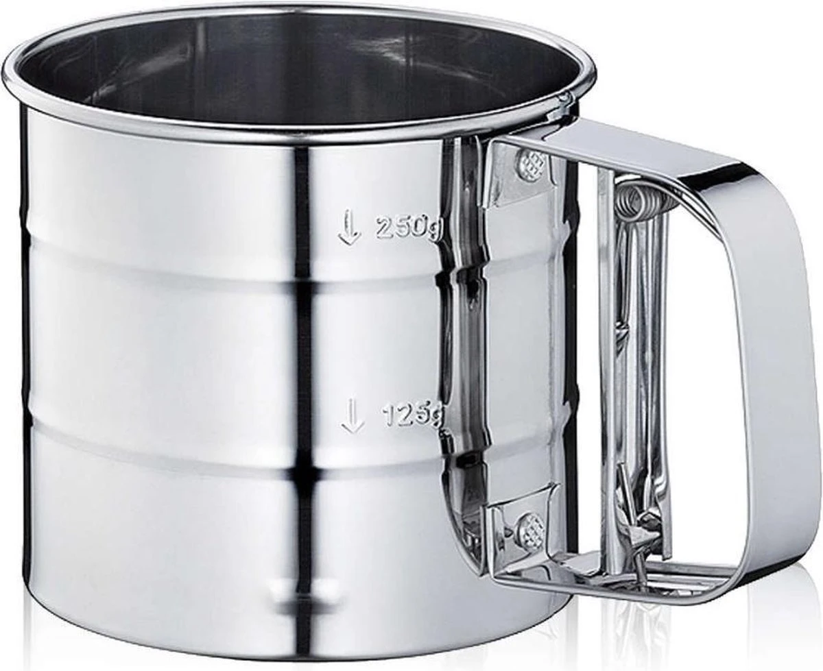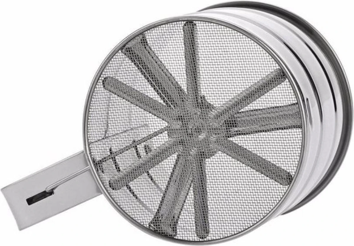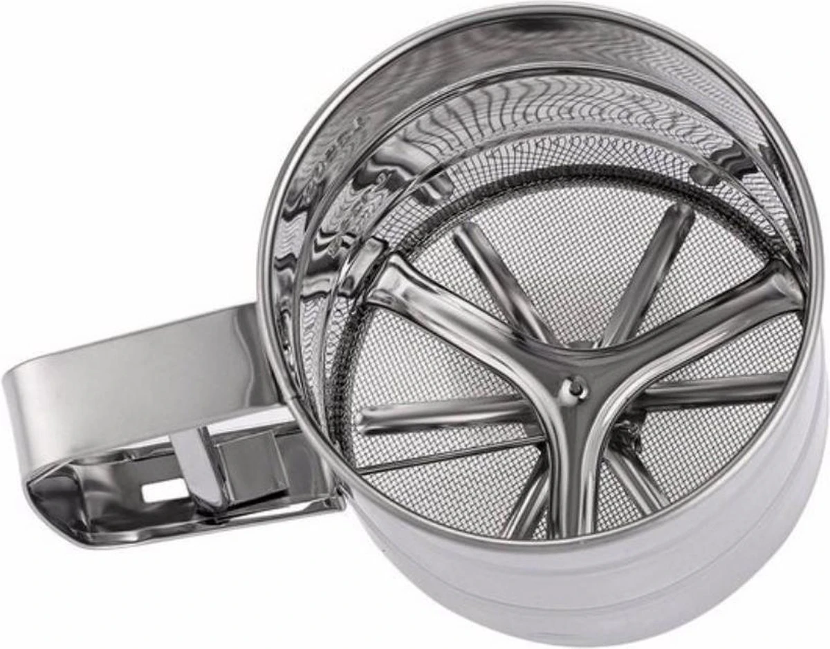 Meel en bloem verdeel je voortaan handig met deze professionele meelzeef, het is met maar één hand te bedienen.