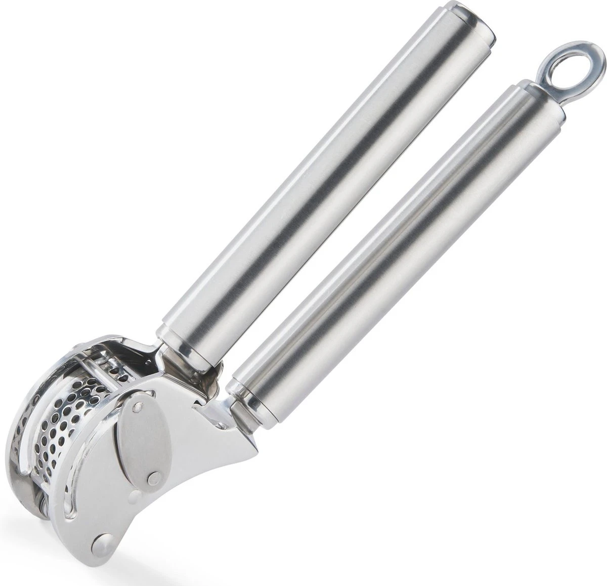 De knoflookpers van Rösle is gemaakt van hoogwaardig 18/10 RVS en conisch gevormd. Hierdoor ligt de knoflookteen beter in de houder waardoor je er nog meer uit kan halen! Zelfs ongepelde knoflooktenen zijn geen enkel probleem. Pluspunten: Conisch gevormd Vaatwasmachinebestendig Ophangbaar Persen met de minste inspanning Ook geschikt voor gember Minpunt: Geen In 1888 richtte Karl Theodor Rösle zijn bedrijf Rösle op in Duitsland. Zijn doel was om productiemethodes te moderniseren zonder dat het ten koste zou gaan van het bijbehorende vakmanschap. Dit begon in de bouwindustrie maar in 1903 kwam daar de lijn geëmailleerde kookgerei bij en snel volgde de tinnen, verschroomde en RVS collectie! Door dit succes ging hij zich volledig focussen op de kookgerei en al snel werd het merk bekend in zowel de professionele keuken als thuisgebruik. Van appelboor tot vergiet. In de brede collectie van Rösle is alles te vinden wat een keuken nodig heeft. Het is dan ook niet voor niets dat het merk Rösle al meerdere, zeer prestigieuze, designprijzen heeft gewonnen.