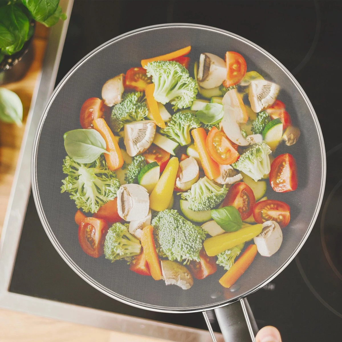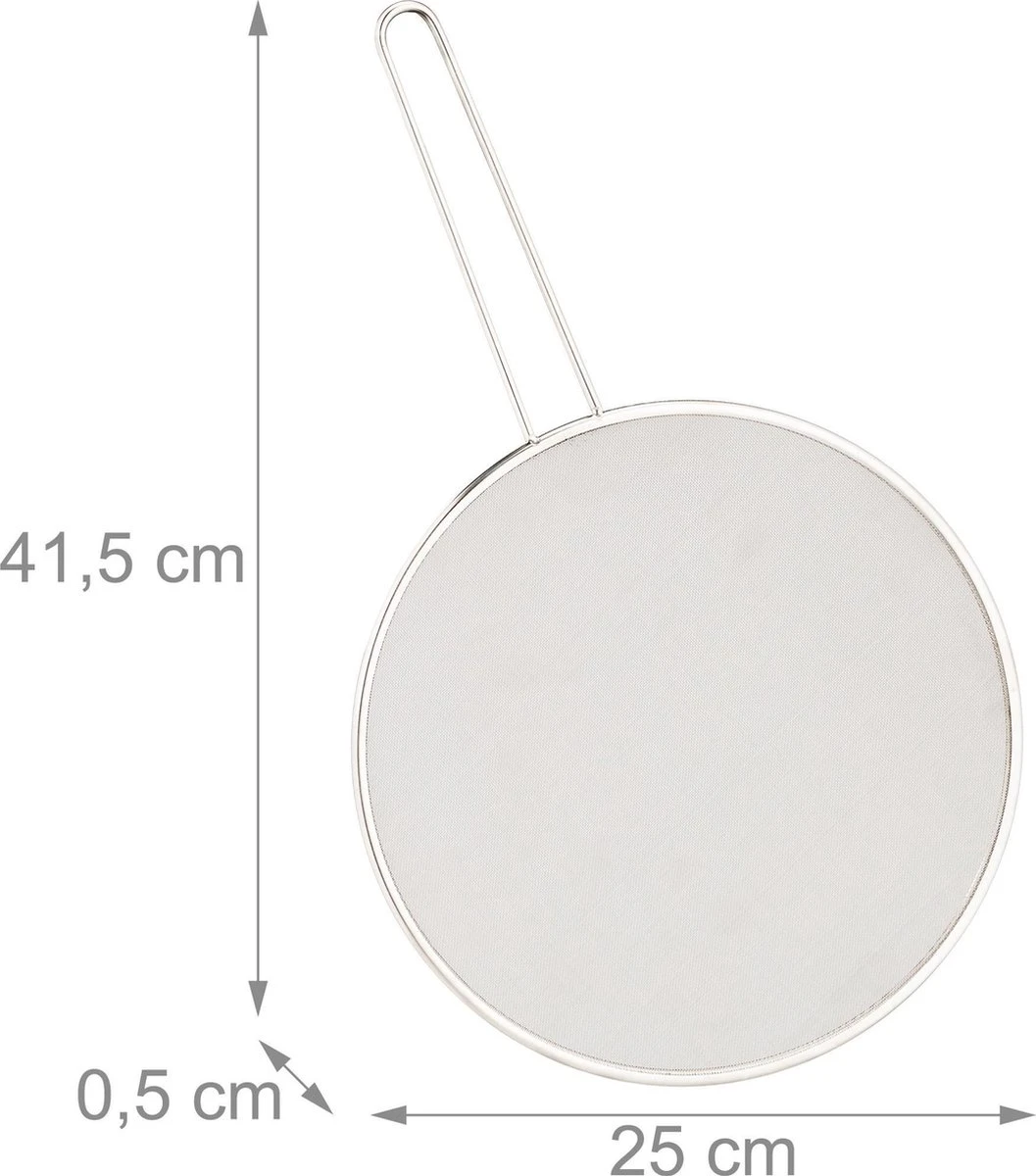 Met de spatdeksel bescherm je keukenmuren en kleding voor vetvlekken, welke bij het koken uit de pan spat. Gewoon de antispatdeksel op de pan leggen en het braadvet blijft netjes in de pan. Bovendien wordt het vlees, vis of de groente, in tegenstelling tot een deksel, goed geventileerd en daarom lekker knapperig. De spatdeksel met gaas is gemaakt van roestvrij staal en daardoor geschikt voor de vaatwasser.