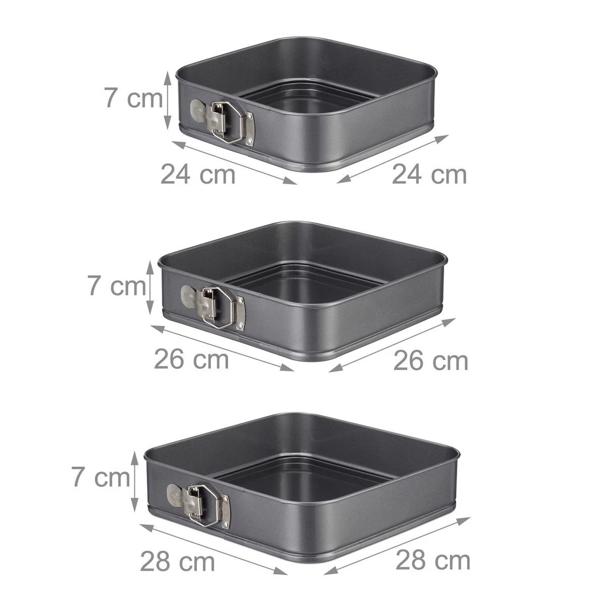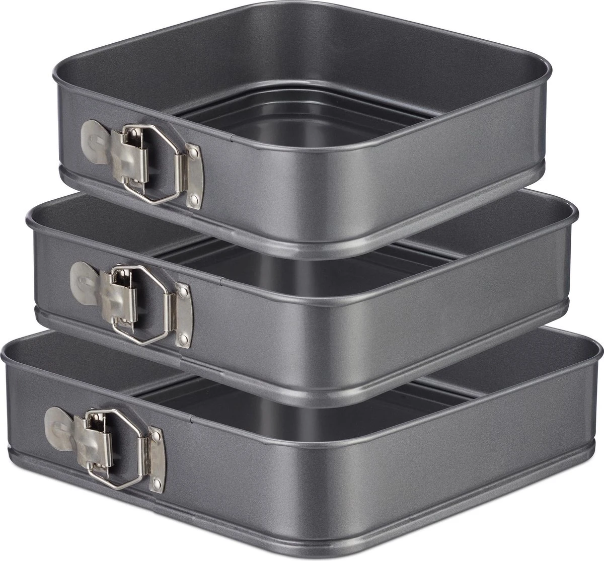 Je wilt je dierbaren met de heerlijke geur van gebak verrassen? Wat is er dan lekkerder dan een zelfgebakken taart op zondagmiddag? Met deze bakvormen set kun je de benodigde grootte afstemmen op het aantal gasten of een creatieve taart met maar liefst 3 lagen maken. De vierkante taartvormen zijn ideaal voor taartbodems of voor lekkere brownies met veel chocolade. Om de taart eruit te halen hoef je hem niet helemaal om te draaien. Je hoeft alleen maar de rand van de springvorm te openen.