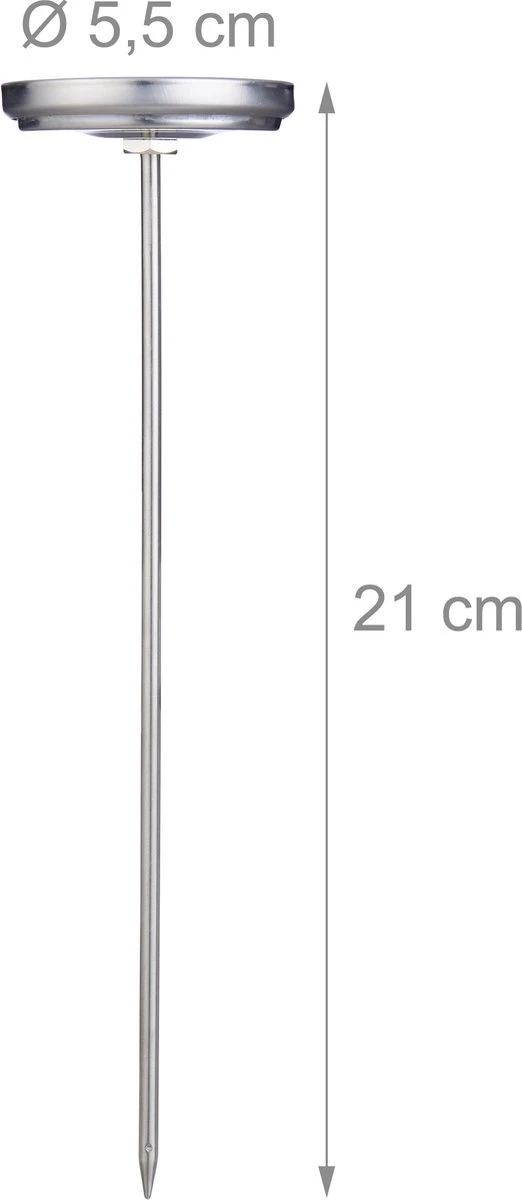 Gaar je eten tot op het punt met de analoge thermometer voor verschillend soorten vlees. Of je nu een rollade gaard of een steak grilt, de vleesthermometer verraad je de kerntemperatuur en garandeert hierdoor levensmiddelen vrij van bacteriën. De gemakkelijk afleesbare display geeft je een gaarpunt van verschillende vleessoorten. De hittebestendige braadthermometer kan tijdens de gehele gaarperiode in de oven blijven. De BBQ thermometer van roestvrij staal is hygiënisch en na gebruik gemakkelijk schoon te maken met een vochtige spons.