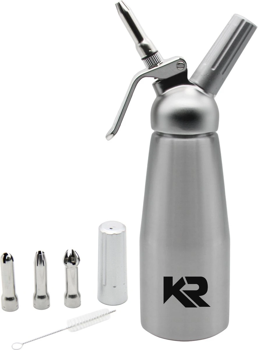 De Keizer RVS Aluminium Slagroomspuit met stalen mondstuk!