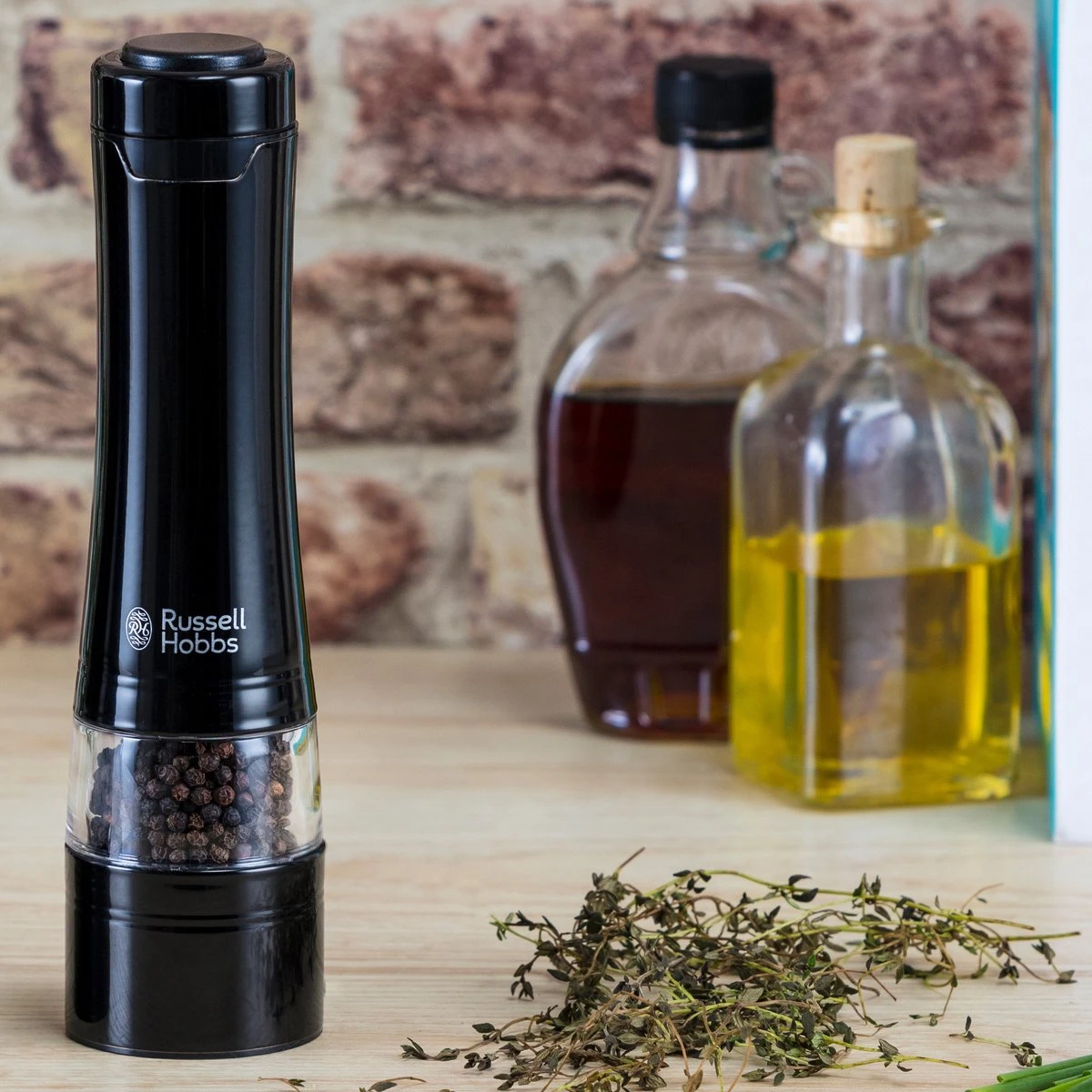 Combineer moderne style en gemak, met de Peper-& Zoutmolen Zwart. Of ze nu in de keuken of op de tafel staan, de zwarte roestvrijstalen molens zijn stijlvolle eyecatchers. Met één klik op de knop worden alle kruiden en specerijen moeiteloos vermaald. Ze zijn voorzien van een keramisch maalsysteem waarmee je kunt afstellen hoe grof of fijn je wilt malen.