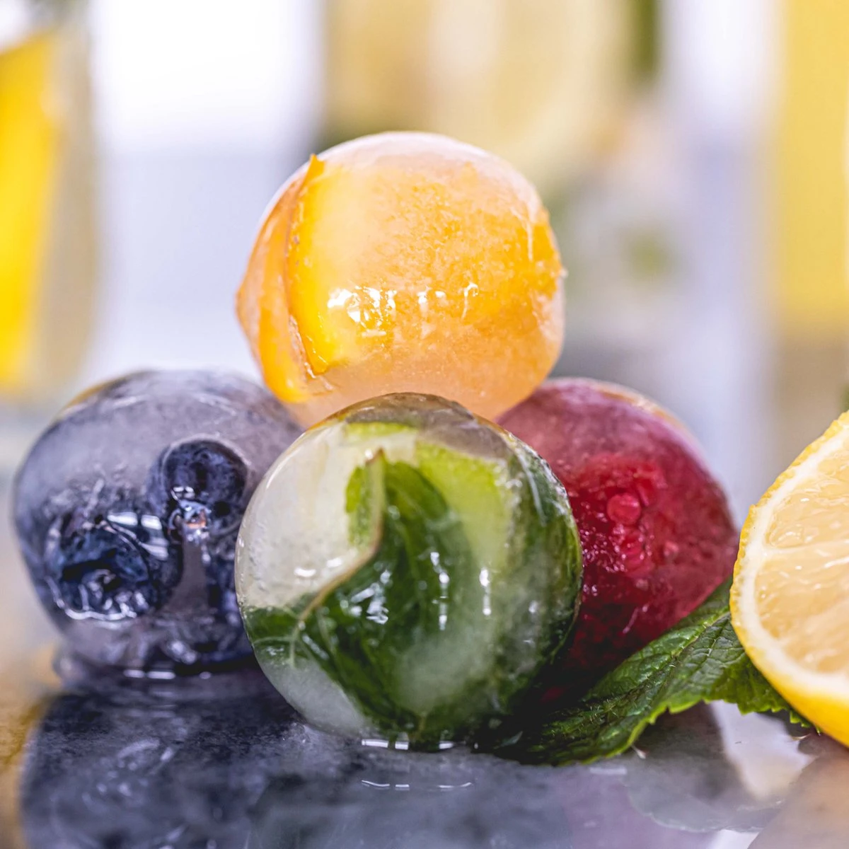 Met ijsbollen uit deze Sareva ijsblokjeshouder koelen uw cocktails sneller. Door hun uitzonderlijke grootte smelten de ijsballen ook trager, waardoor uw drank langer zijn smaak behoudt. De ijsbollen kunnen per 6 stuks worden gemaakt en krijgen een diameter van 4.5 cm. Tevens is de ijsblokjeshouder gemaakt van siliconen, waardoor de bollen er gemakkelijk uit te krijgen zijn.Hoe maak je perfect ronde ijsballen?Neem de onderste siliconenhelft vast, met de voetjes aan de onderkant. Vul deze helemaal met water tot aan de bovenste rand. Plaats vervolgens het deksel erop, met de openingen aan de bovenkant en met de lipjes op de zijuitsparingen van de onderste siliconenhelft. Zo blijft ook een deel van het water in het bovenste deel, zodat er perfect ronde ballen gevormd kunnen worden.Leg de ijsblokhouder voldoende lang in de diepvries. Haal nadien de ijsballen eruit. Dit gaat zeer gemakkelijk door de flexibiliteit van silicone. Voor nog meer cocktail fun kunt u de ijsballen ook een fruitsmaak geven. Door vruchtensap of stukjes van vruchten zoals framboos, aardbei, kers, citroen en limoen aan het water toe te voegen. De Sareva IJsbollenmaker wordt geleverd zonder dopjes.