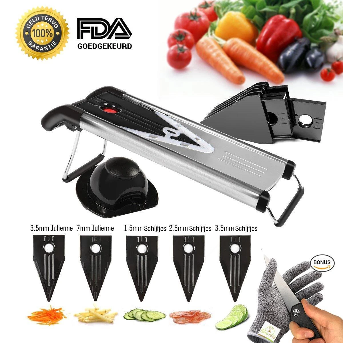 Saveur Royal® Premium V-Blade Mandoline Met EXTRA Snijbestendige Handschoen Met 5 Snijbladen- Julienne Snijder. Perfect Voor Het Snijden Van Voedsel, Fruit En Groenten. Keukensnijder Mandoline Snij Apparaat Groentesnijder
