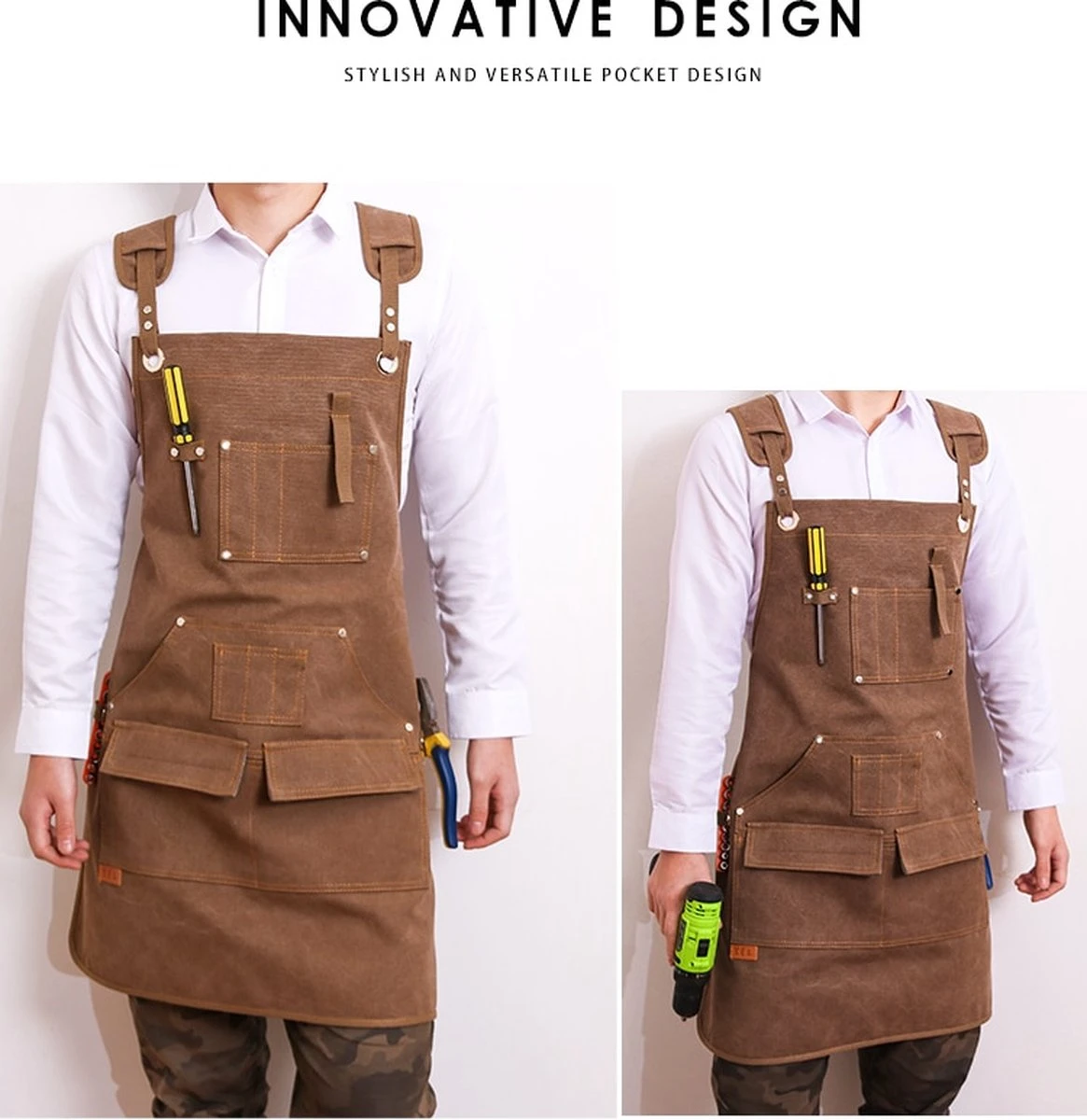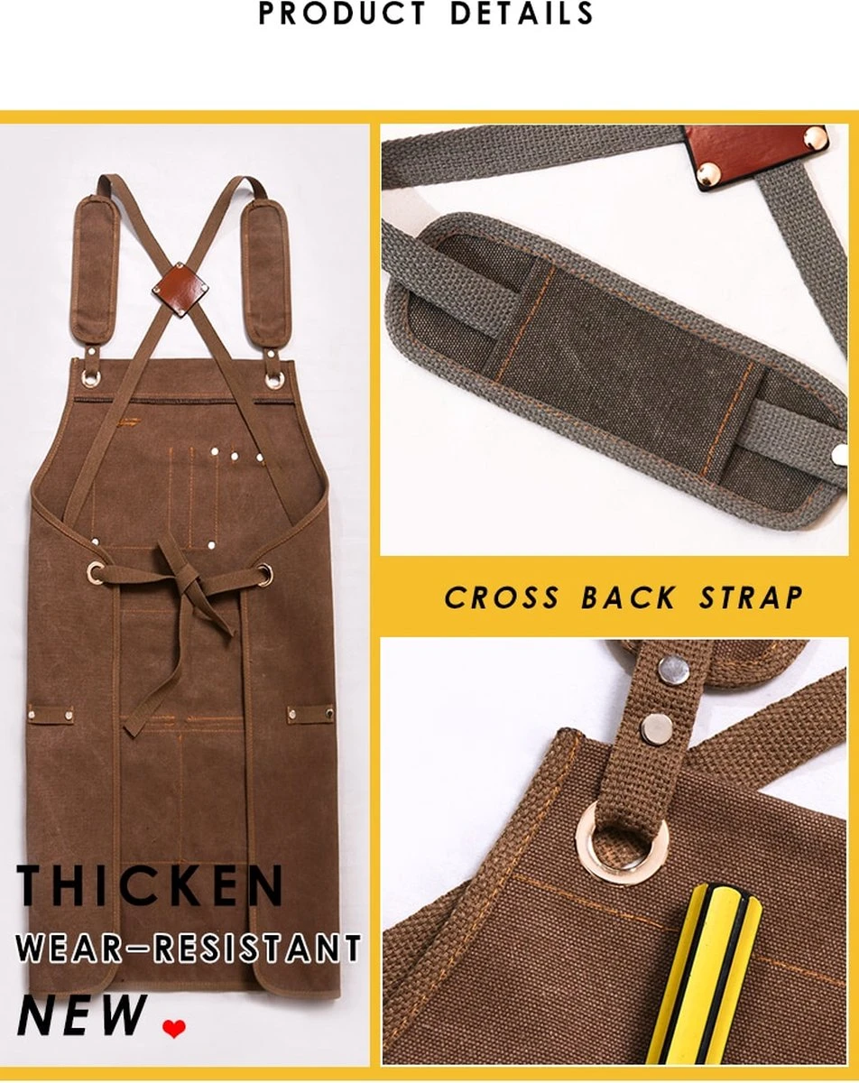 Het schort is gemaakt van hoge kwaliteit dikke canvas stof en zit erg comfortabel en licht. Doordat de riempjes kruislings achterwaards zijn, verlicht dat het gewicht om je nek en door de extra brede schouderriemen is het gewicht op je schouders verdeeld, waardoor de riempjes niet in je schouders snijden.