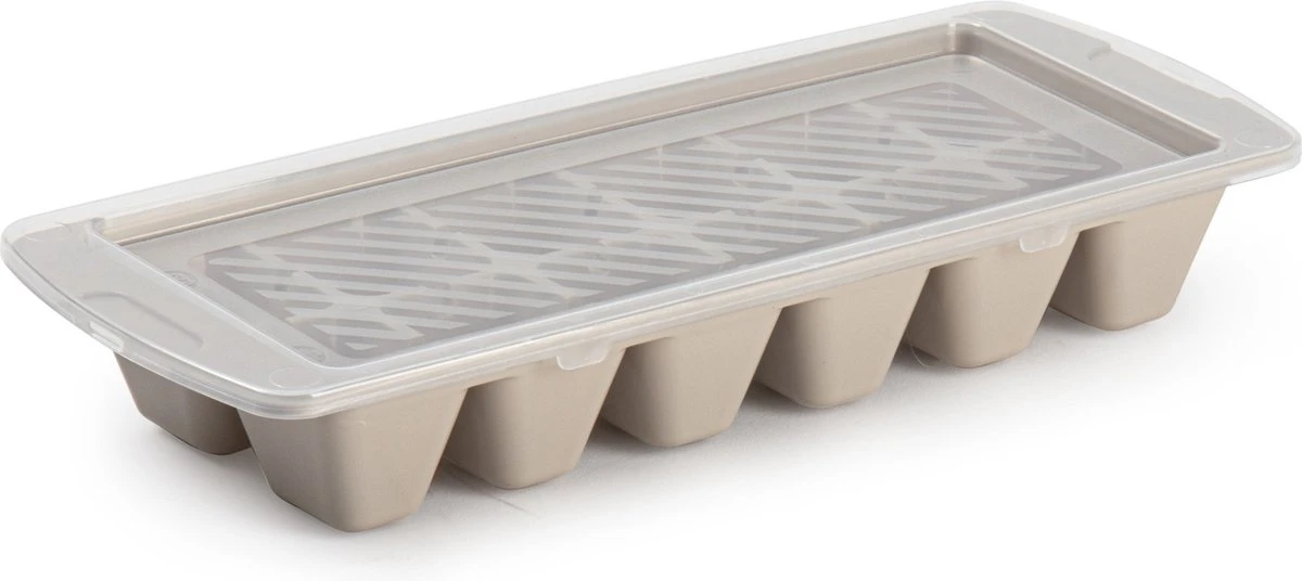 Set van 3x stuks IJsblokjes/ijsklontjes maken kunststof bakje met handige afsluitdeksel taupe 28 x 11 cm. Gemakkelijk ijsklontjes maken om uw drankjes te koelen.