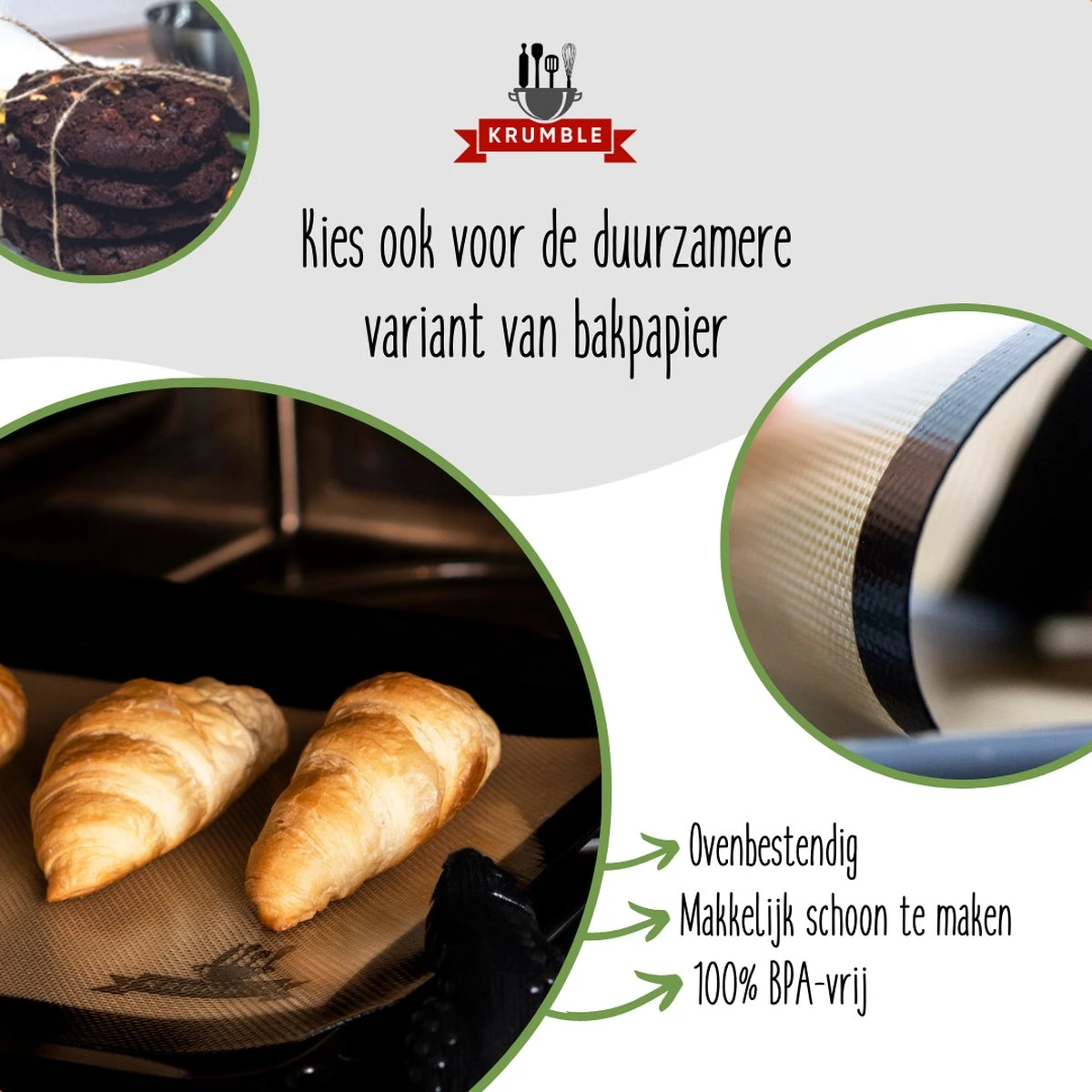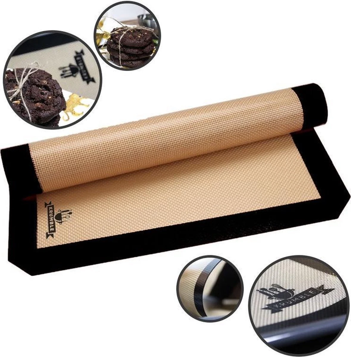 Deze siliconen bakmat is de perfecte set voor bak en kookliefhebbers. Hij is namelijk hittebestendig tot 250 graden en heeft een grootte van 30 x 40 cm waardoor hij in elke oven past. Niet langer heb je last van dat bakpapier dat je telkens in de juiste maat moet knippen en vervolgens weer weg kan gooien. Ook kun je deze mat in de vaatwasser stoppen wat hem herbruikbaar maakt dit scheelt je afval. Verder is hij nog anti-kleef waardoor hij niet mee rolt als u er bijvoorbeeld deeg op gaat rollen en nog belangrijker er blijven geen etensresten aan plakken! Goed voor de hygiëne. Ook is hij BPA-vrij waardoor hij gemaakt is van niet-giftige(non-toxic) siliconen wat hem niet giftig maakt.