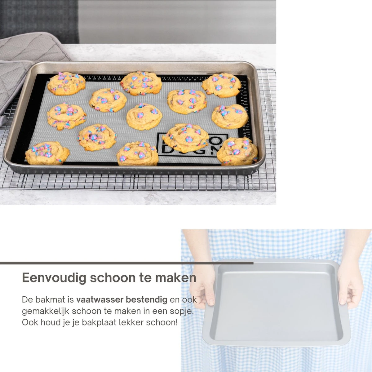 - Eenvoudig schoon te maken: De bakmat is vaatwasser bestendig en ook gemakkelijk schoon te maken in een sopje. Ook houd je je bakplaat lekker schoon!