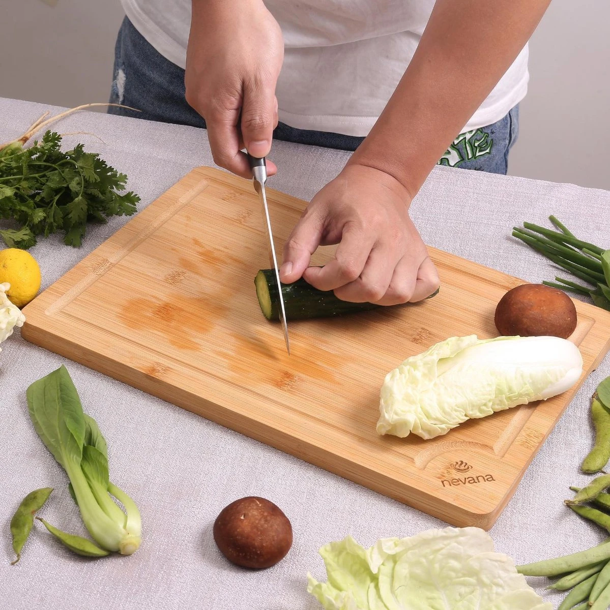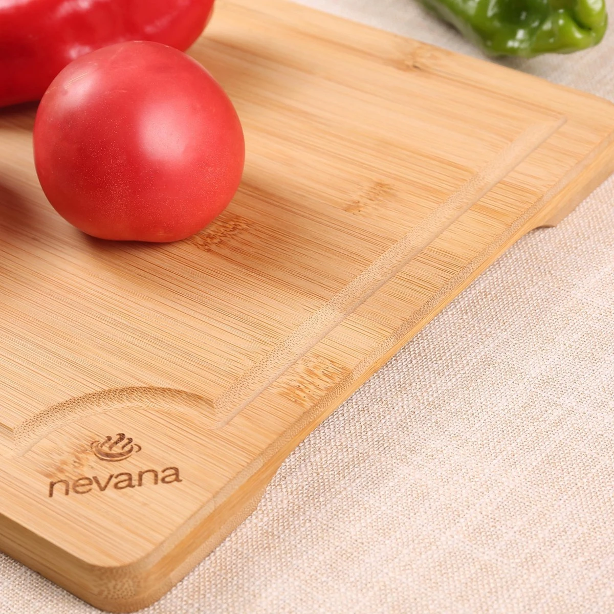 Deze stijlvolle snijplank is gemaakt van duurzaam bamboehout. De achterkant is ideaal om te gebruiken als serveerplank. De nevana snijplank heeft een sapgeul en is daarom makkelijk schoon te maken. De plank beschikt over antislip voetjes, zodat de snijplank niet zal verschuiven tijdens het snijden van het voedsel. Na gebruik kan deze plank gewoon in de vaatwasser.