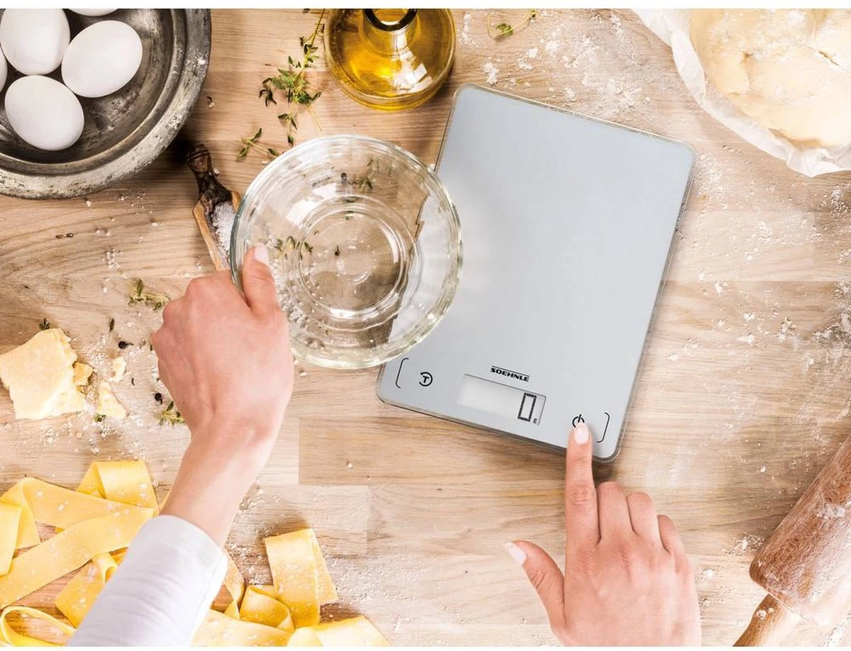 Een weegschaal waarmee koken en bakken nóg leuker wordt! Digitale keukenweegschaal Page Comfort 100 valt op door zijn strakke puristische design en door het grote, zeer goed leesbare lcd-display. Weegt maximaal 5 kg, op 1 gram nauwkeurig. Met de handige bijweegfunctie kun je alle ingrediënten toevoegen in dezelfde schaal en ze toch afzonderlijk wegen. Bijzonder praktisch! Dankzij het grote weegplateau blijft het display ook goed zichtbaar bij grote schalen en pannen. Dankzij de gepatenteerde sensor-touch-functie is de Page Comfort 100 bijzonder comfortabel te bedienen en schoon te maken. Deze digitale keukenweegschaal is bijzonder gemakkelijk plaatsbesparend op te bergen: tussen de kookboeken, in een la, of hangend aan de wand. Klaar met wegen? Dan schakelt de weegschaal zich automatisch uit. Dat bespaart veel energie. De meegeleverde batterijen gaan zelfs bij tweemaal daags gebruik wel twee jaar mee.
