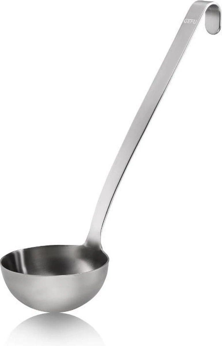 Een soeplepel is een belangrijk onderdeel van onze keuken en kan voor veel verschillende gerechten gebruikt worden. Denk bijvoorbeeld aan een lekkere warme soep, sauzen, oliën of bouillon voor een risotto. Een goede kwaliteit lepel is daarbij erg belangrijk. De Baseline soeplepel van Gefu is naadloos, praktisch, robuust en duurzaam. Dankzij de handige haak is hij gemakkelijk op te hangen. Na gebruik kan hij worden schoongemaakt in de vaatwasser.