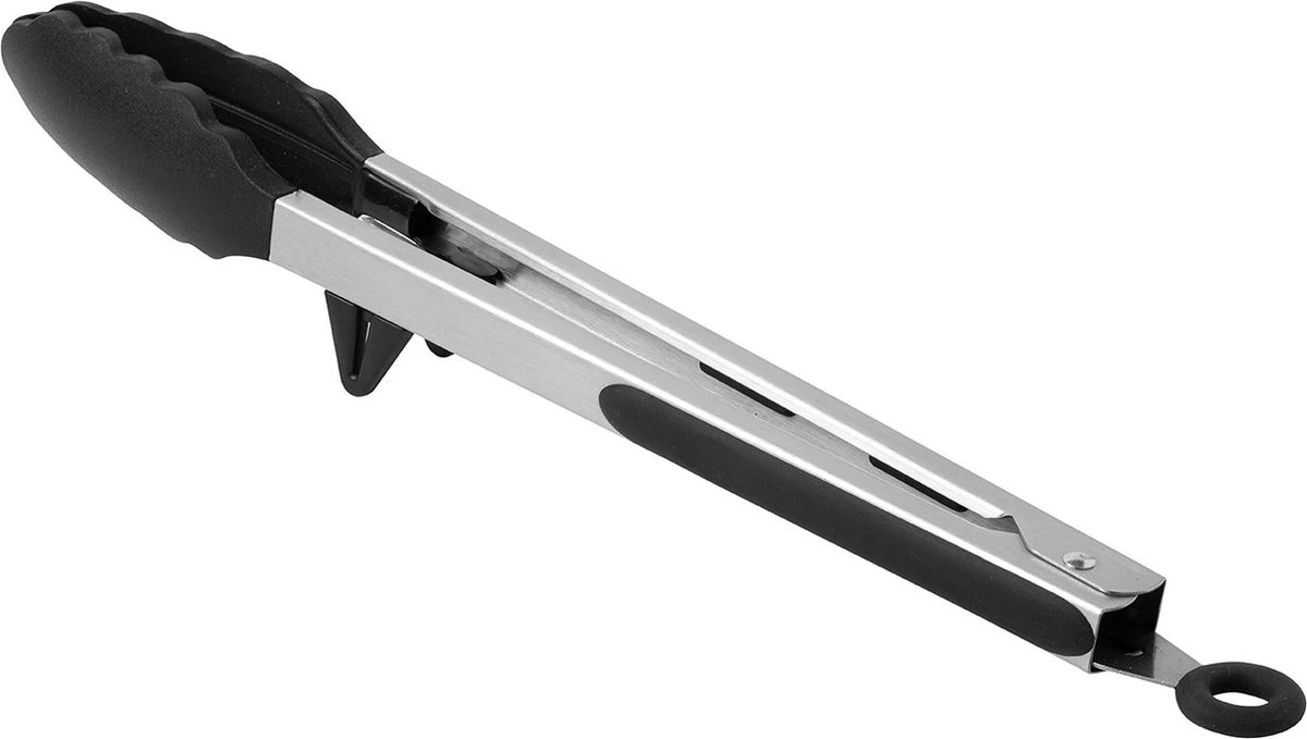 Doormiddel van het inknijpen van de tang en het omhoog trekken van het ophangoog zet u de tang op slot. Wanneer u deze tang inknijpt en het ophangoog naar beneden duwt dan opent u de tang weer. Makkelijk in gebruik en handig om op te bergen! Deze tang is hittebestendig tot 230 graden en kan worden gereinigd in de vaatwasser. Het handvat is voorzien van een siliconen rand wat zorgt voor extra grip en gebruikscomfort.