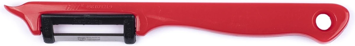 Deze dunschiller is het ideale keukenhulpje. Bijzonder handig voor het schillen van bijvoorbeeld aardappels, fruit en groenten. Het handvat ligt goed in de hand waardoor je voldoende kracht kunt zetten en haast moeiteloos kan schillen.