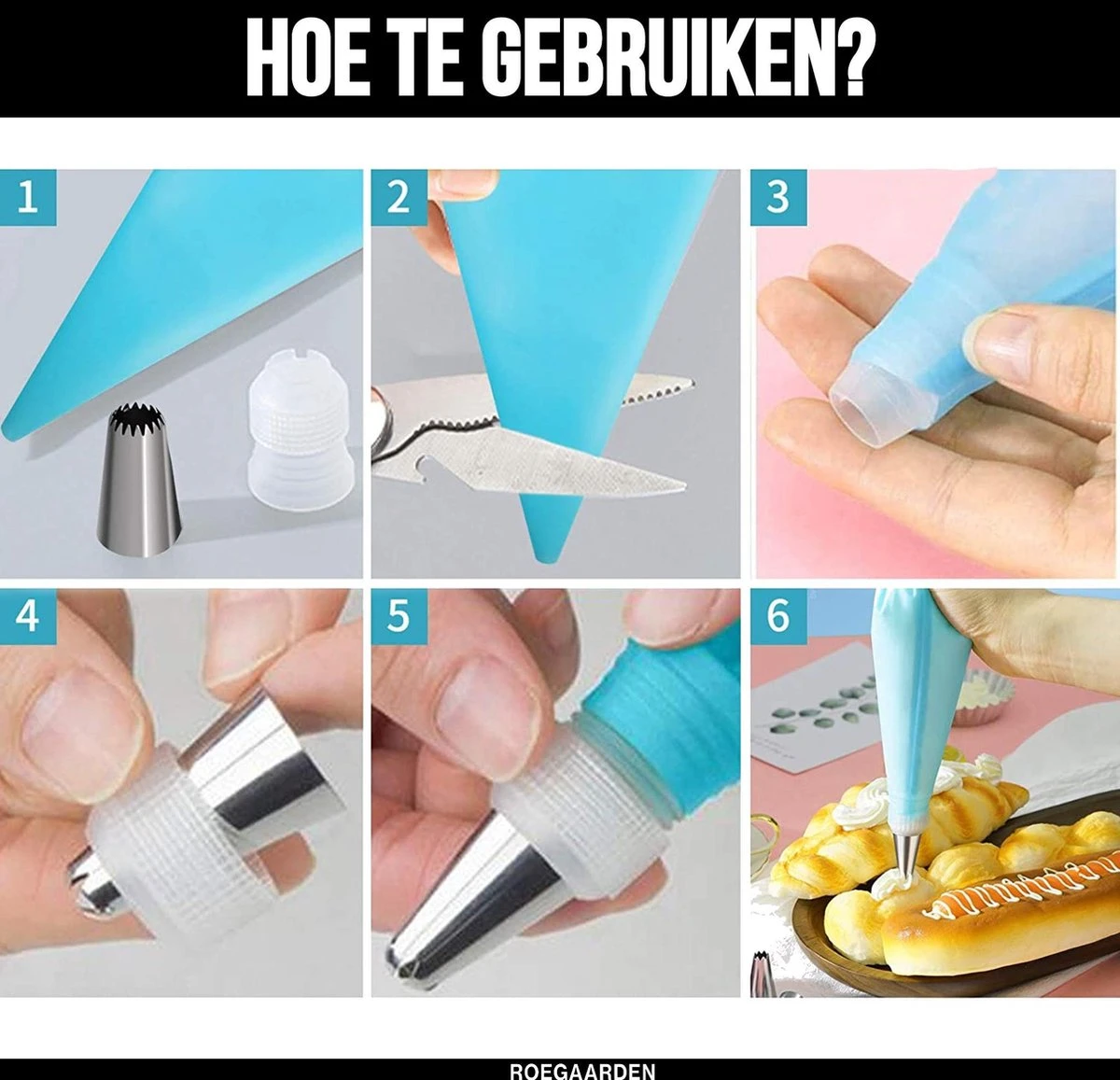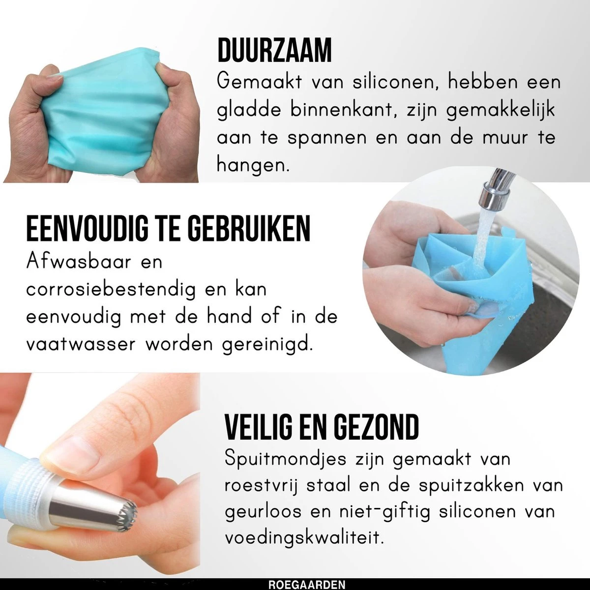 Spuitzak Met Spuitmondjes | Herbruikbaar | 6 Spuitmondjes | Blauw