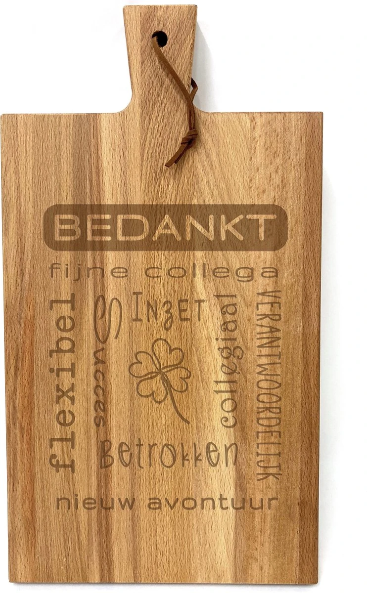 Snijplankje/Hapjesplankje met tekst gravure BEDANKT fijne collega.