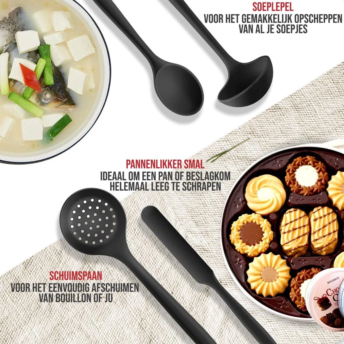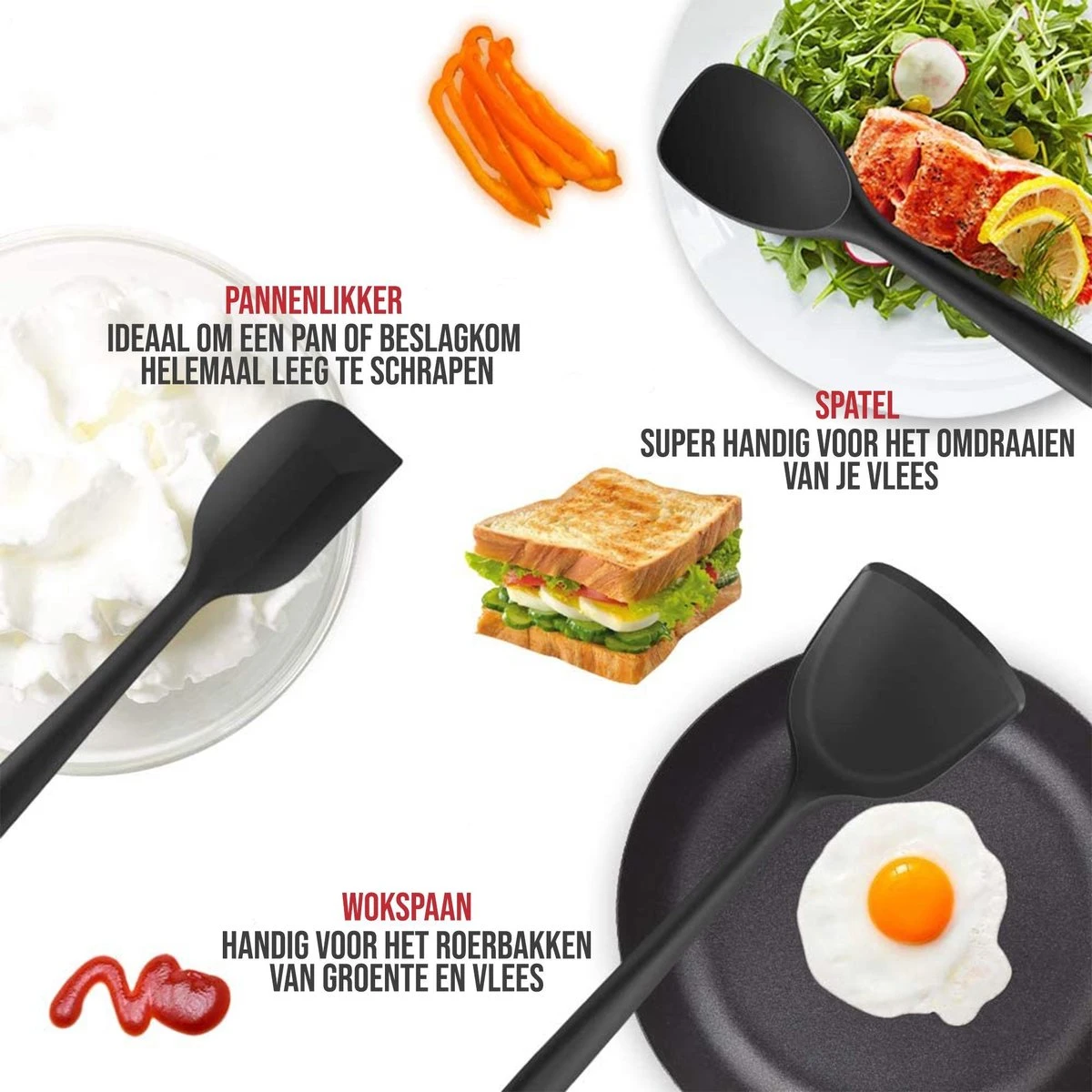 Ook zo gek op jouw non-stick pannen? Met ons siliconen keukengerei voorkom je schade en krassen. Elk onderdeel is van een siliconen laag voorzien & houdt jouw kookgerei zo in topconditie.