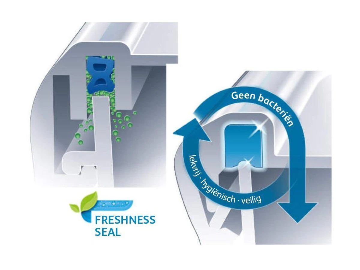 ✅ 100% lekvrij -100% hygiënisch: Voorkomt schimmelvorming in de rand van de deksel dankzij de speciale MasterSeal