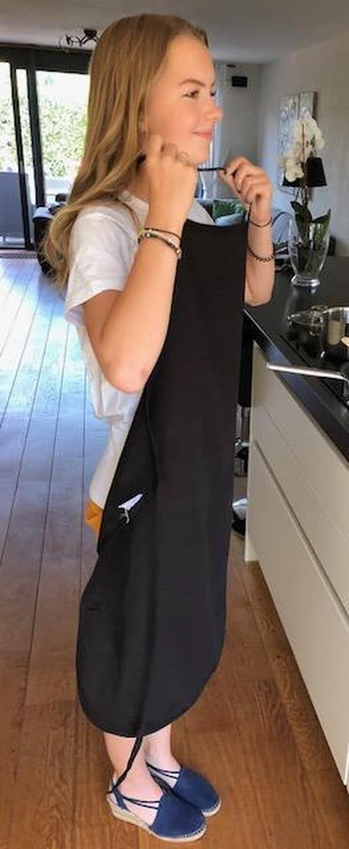 Halterschort van 100% katoen. Zwart. Ook te gebruiken als sloof.