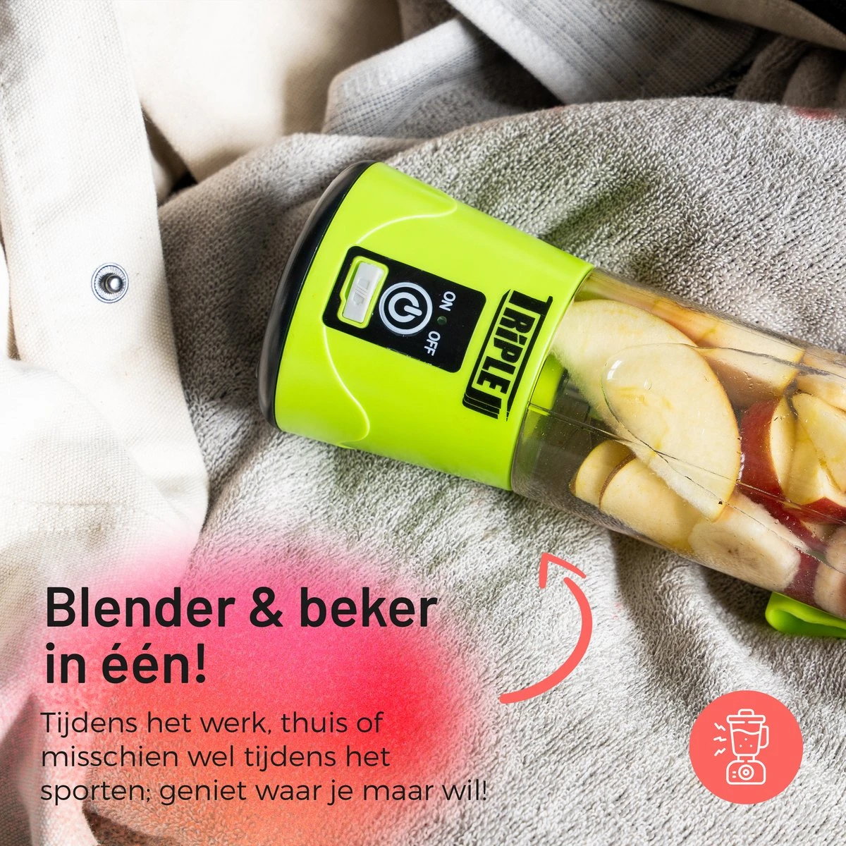 Zowel thuis als onderweg in een handomdraai jouw favoriete smoothie blenden? Dan zit je helemaal goed met de veelzijdige Blender To Go van Triple J®! Deze draagbare blender voorzien van een handige draadlus maakt het een blender en smoothie beker in 1.