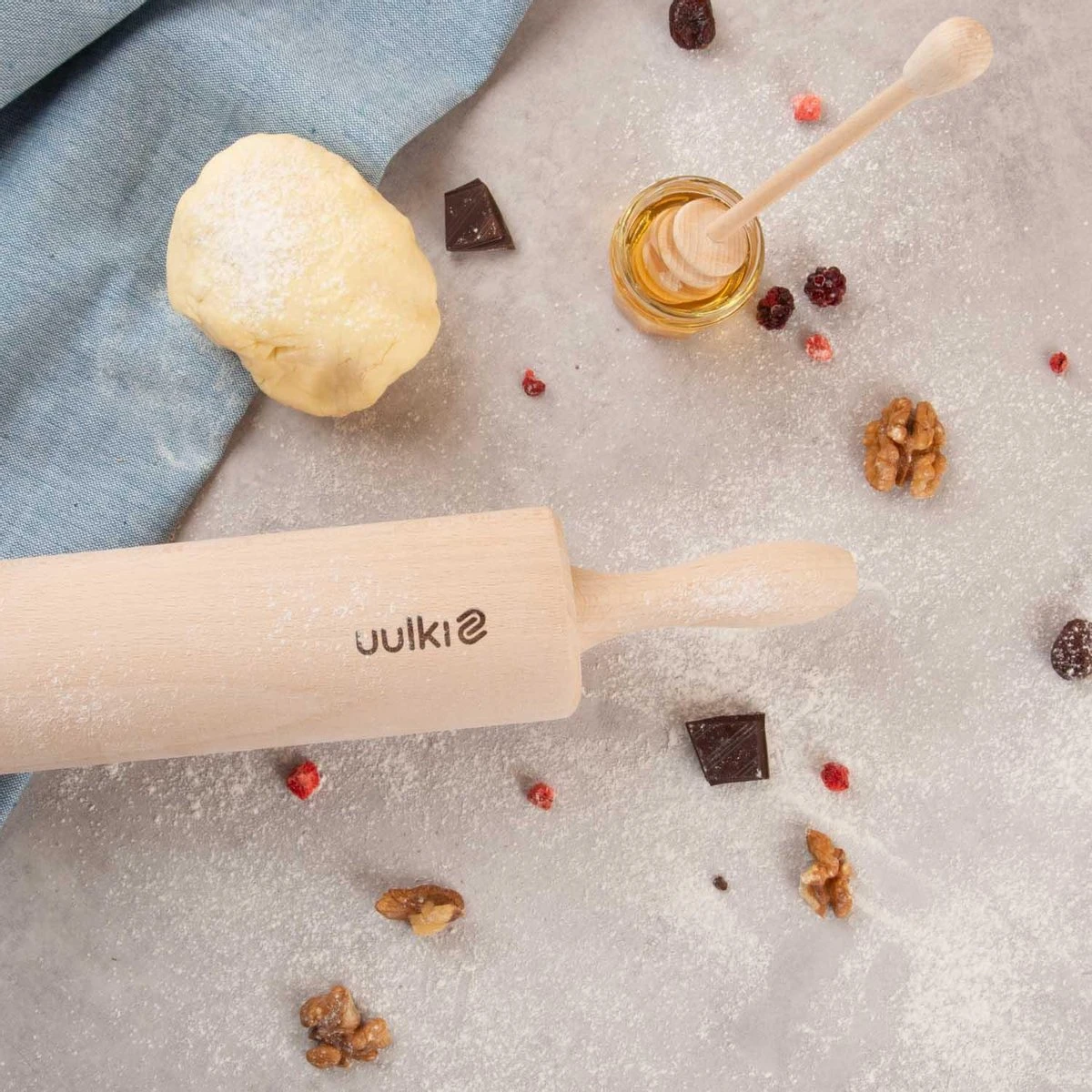 Uulki Ecologische Deegroller Uit Europees Beukenhout – Houten Deegrol Met Handvatten En Draaiende Roller 720