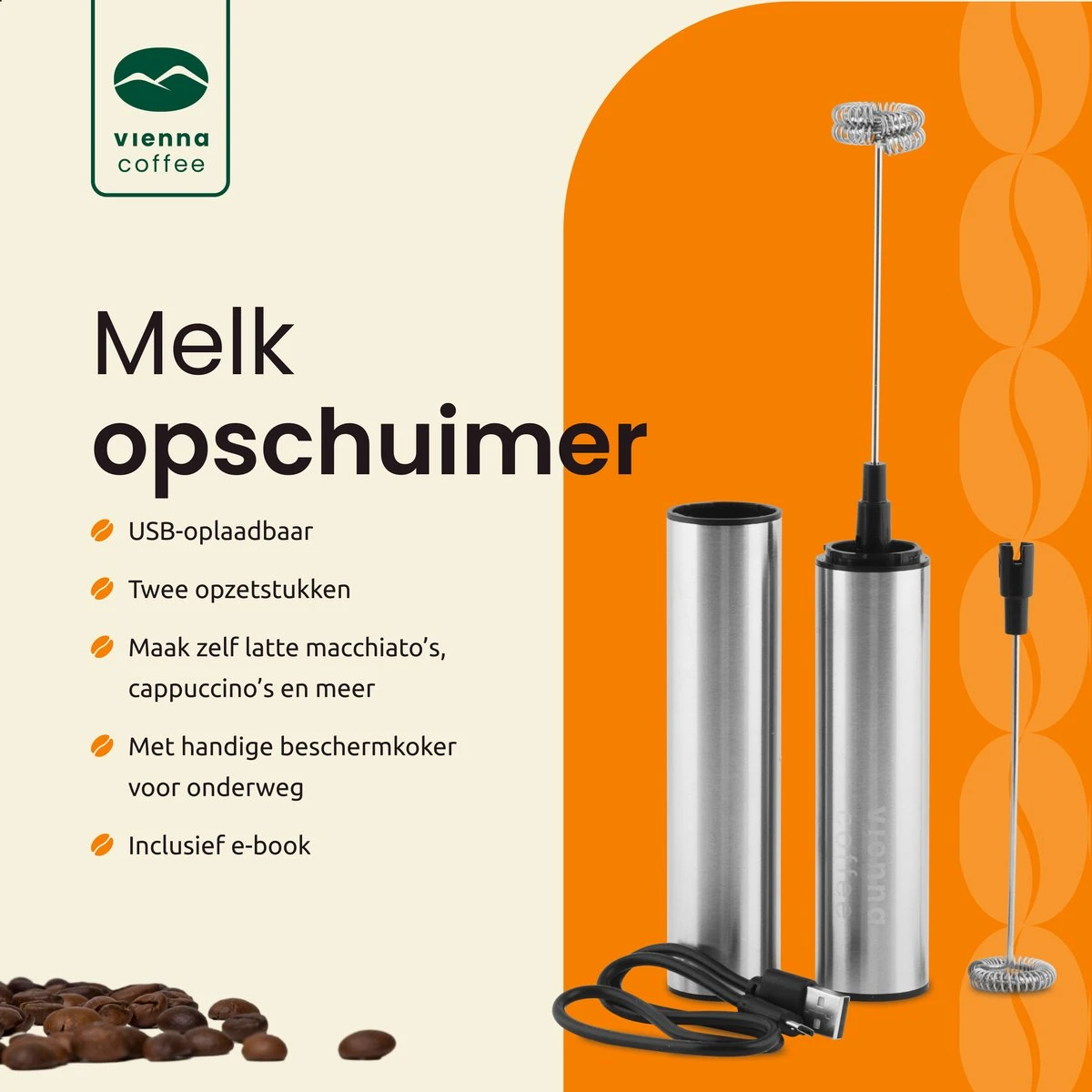 Onmisbaar voor iedere koffieliefhebber! Bestel de Vienna Coffee melkopschuimer en ga thuis aan de slag als een echte bariasta!