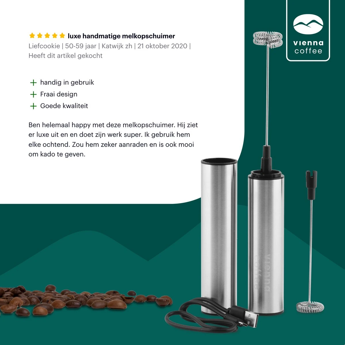 Pluspunten Vienna Coffee handmatige melkopschuimer