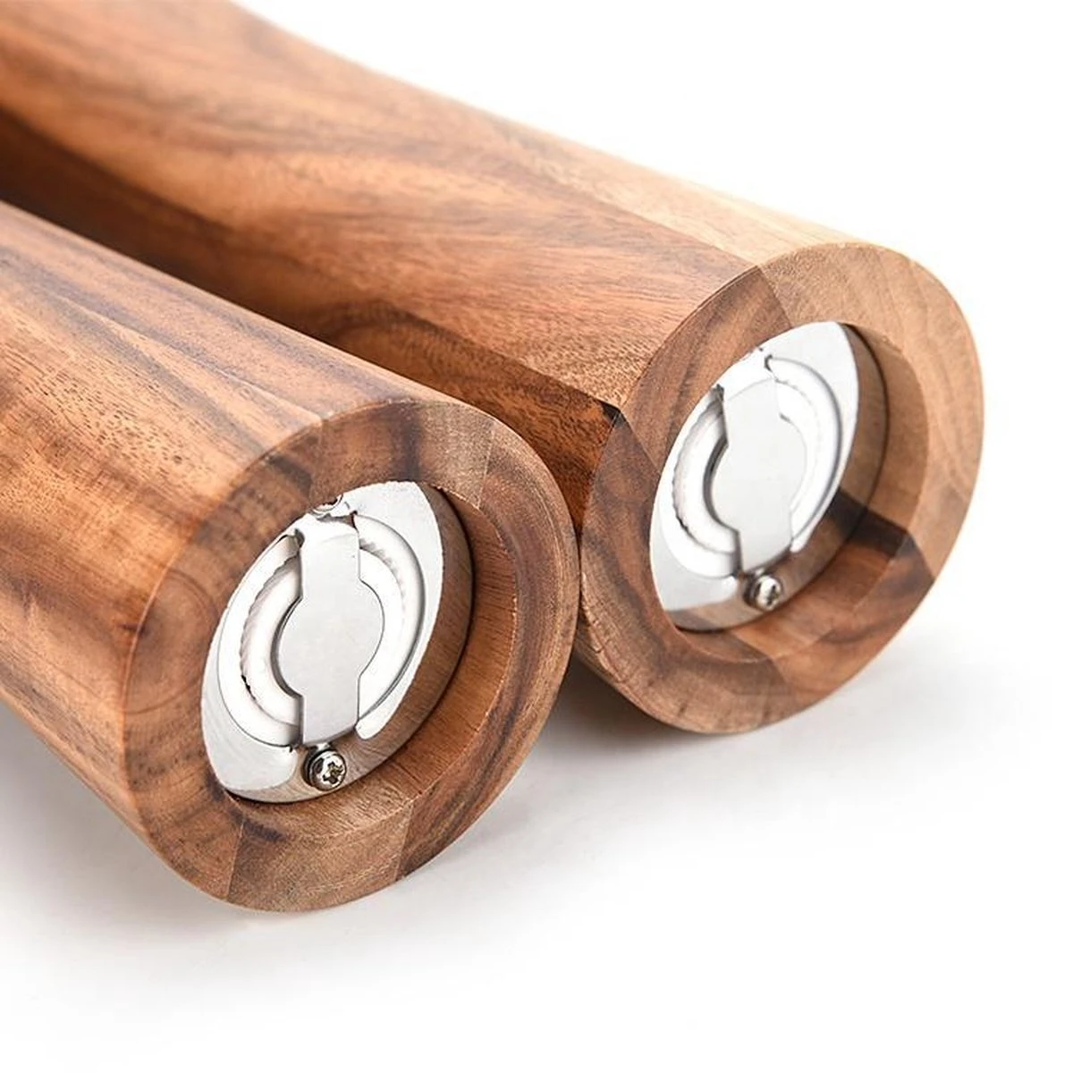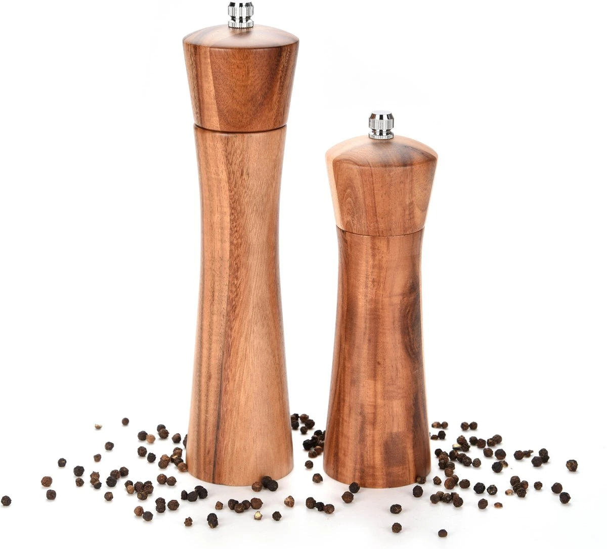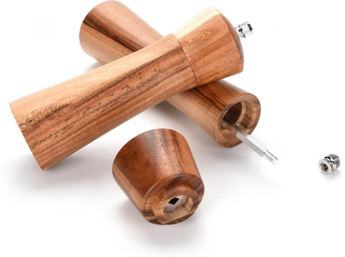Dit peper en zoutstel is gemaakt van hoogwaardig acaciahout en mooi afgewerkt. Het heeft een tijdloos ontwerp en is duurzaam door het keramisch maalwerk.