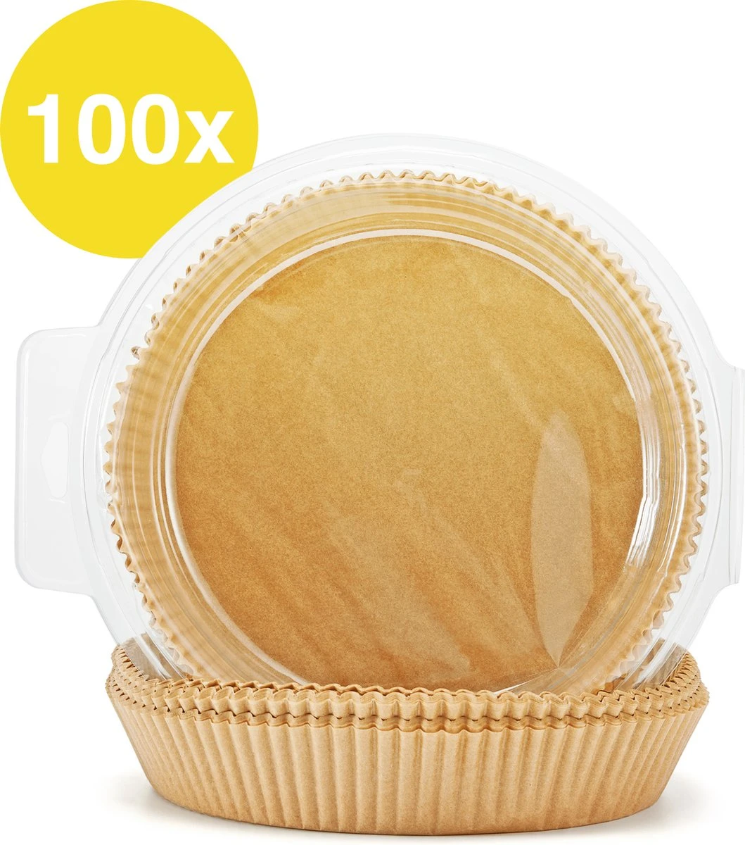 De meeste airfryer bakken hebben een diameter van 20 cm. Het airfryer bakpapier is op zijn breedst aan de bovenzijde, waar deze 20 cm breed is. De buitenste opstaande rand houdt voedsel en airfryer gescheiden. De bodem heeft een kleinere diameter van 16 cm. Hierdoor kan de warme lucht goed langs het bakpapier en richting het eten circuleren.