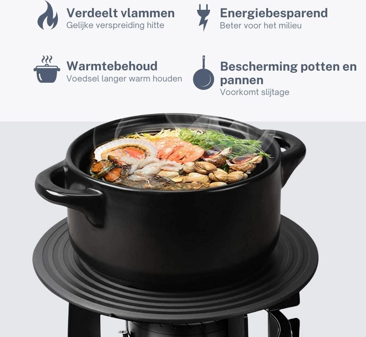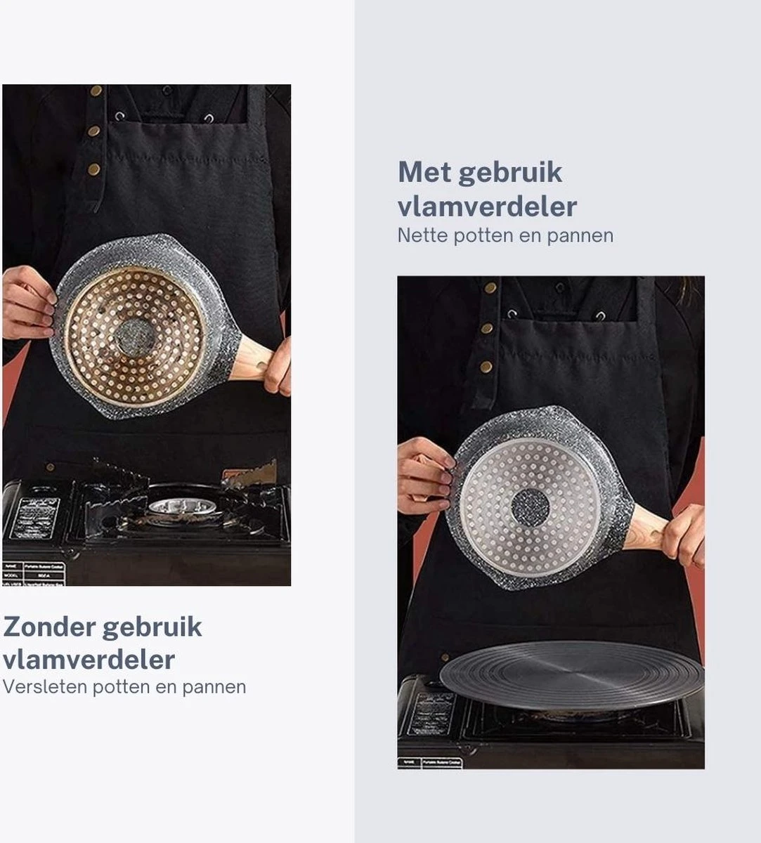 Ben je door alle drukte vergeten je eten uit de diepvriezer te halen? Last van pannen die snel zwart worden aan de onderkant? Voedsel dat niet egaal ontdooit of bakt? Met deze vlamverdeler behoren deze problemen tot de verleden tijd!