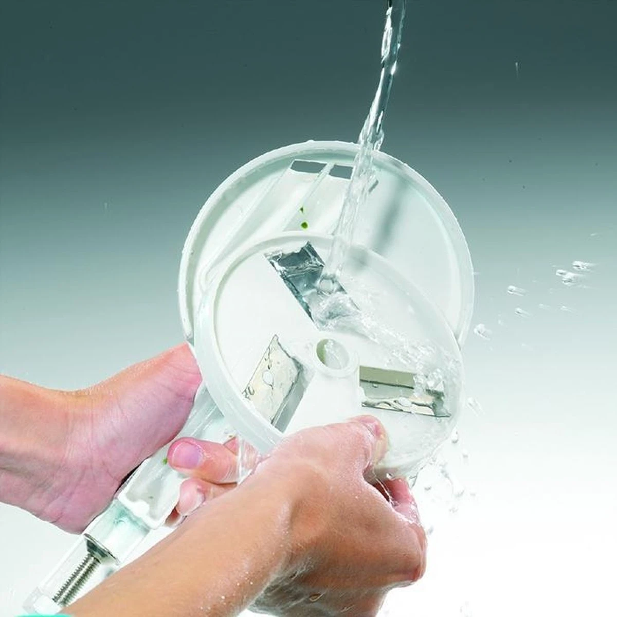 Een unieke hulp bij het snijden van bonen voor bijvoorbeeld een soep, een salade of als groentegerecht naast de bekende Hollandse aardappel. Deze handmatige bonensnijder van Westmark is zeer praktisch in gebruik. Het enige wat je hoeft te doen is je snijboon, sperzieboon of kousenband in de snijder te stoppen en vervolgens te gaan draaien aan het hendel. De bonen worden door de drie geharde en geslepen messen in mooie gelijkmatige stukken gesneden en zijn direct klaar voor bereiding. De stevige tafelschroefklem zorgt ervoor dat je stabiel kunt werken. Na gebruik is deze bonensnijder gemakkelijk schoon te maken met warm water en een sopje. De snijder is gemaakt van aluminium en heeft ultra scherpe RVS messen. De afmeting van deze bonensnijder is 12,3 x 14 x 26,5 cm.