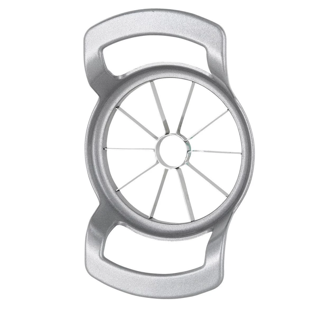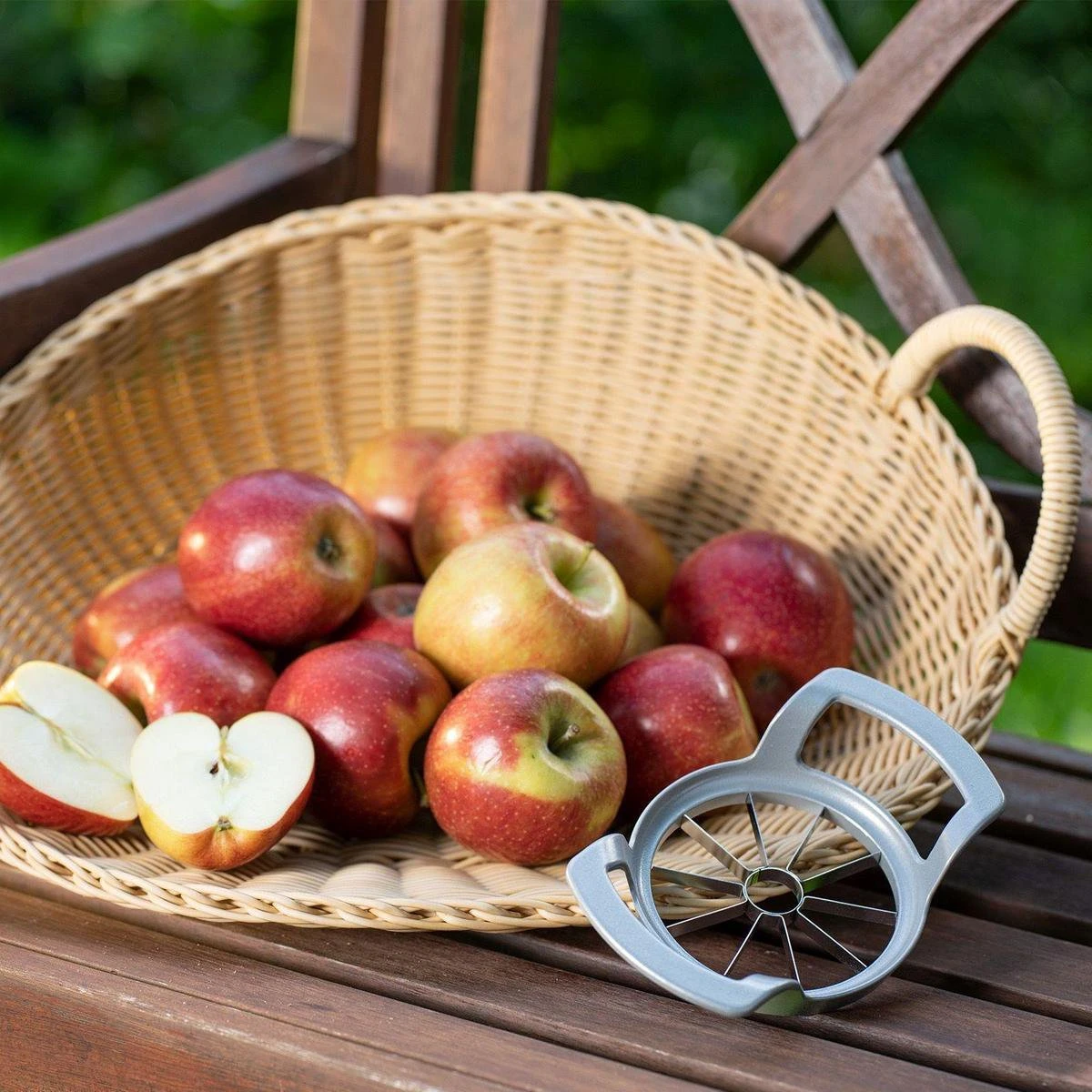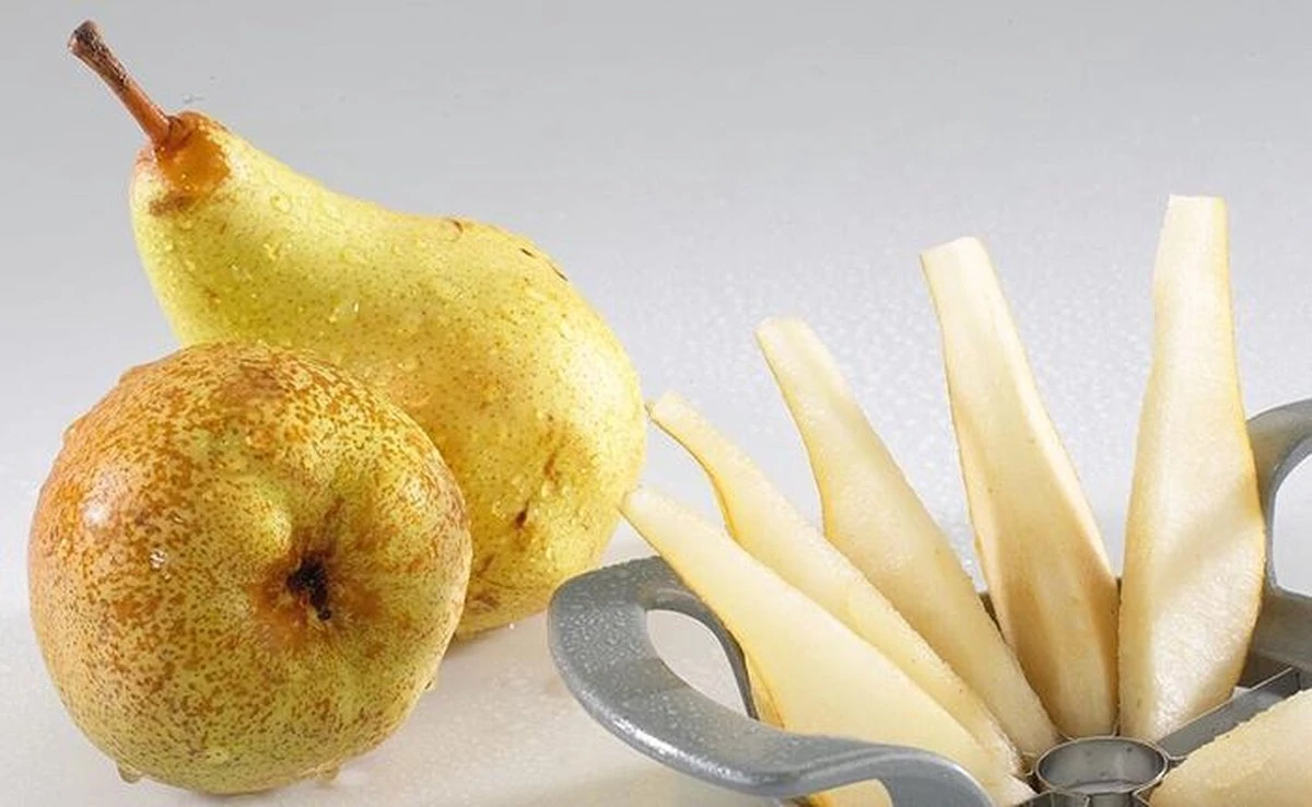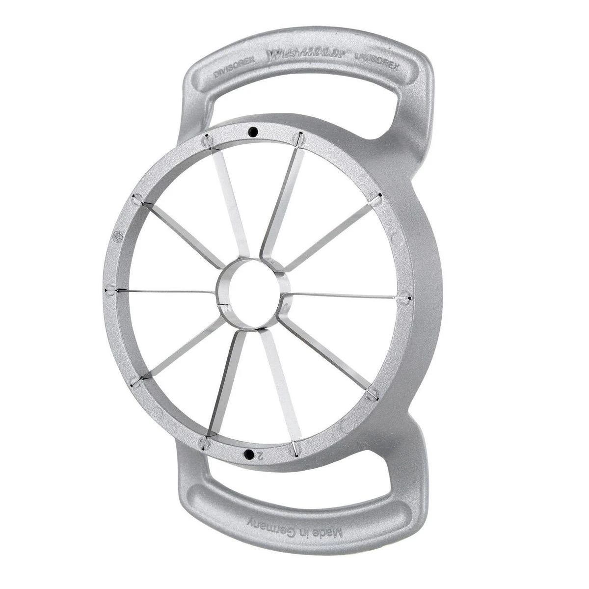 Deze Divosorex appel- en perensnijder van Westmark heeft een stevige en originele vorm en is gemaakt van aluminium. Voor de liefhebber van fruit is deze appel- en peersnijder een echte uitkomst. Met de snijder kun je namelijk in één keer 10 gelijke parten snijden. Daarnaast wordt ook meteen de kern van een peer of appel verwijderd. Met zijn speciaal geslepen messen is het een erg makkelijk te gebruiken keukenhulpstuk. De afmeting van deze snijder is 17 x 11,1 x 4,3 cm.
