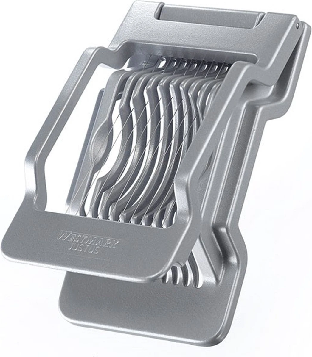 Westmark Eiersnijder JustusSnij uw eieren makkelijker dan ooit te voren met de Westmark eiersnijder Justus. Met deze eiersnijder snijdt u eenvoudig uw eitjes in ronde of ovalen schijfjes. De eiersnijder is gemaakt van hoogwaardig aluminum. De draden zijn gemaakt van RVS en snijden door uw eitjes zoals een warm mes door boter snijdt. De eiersnijder kan eenvoudig gereinigd worden in de vaatwasser.Is de Westmark eiersnijder Justus niet wat u zoekt? Bekijk dan onze andere Westmark eiersnijders of bekijk alle eiersnijder. Bekijk ook eens de rest van onze Westmark collectie!