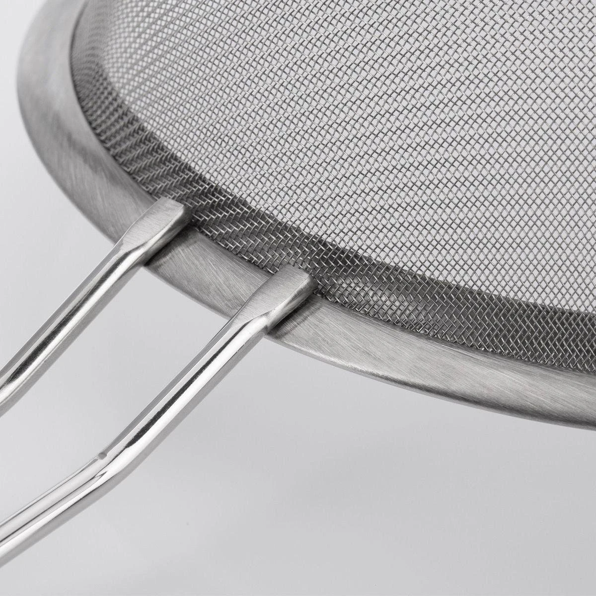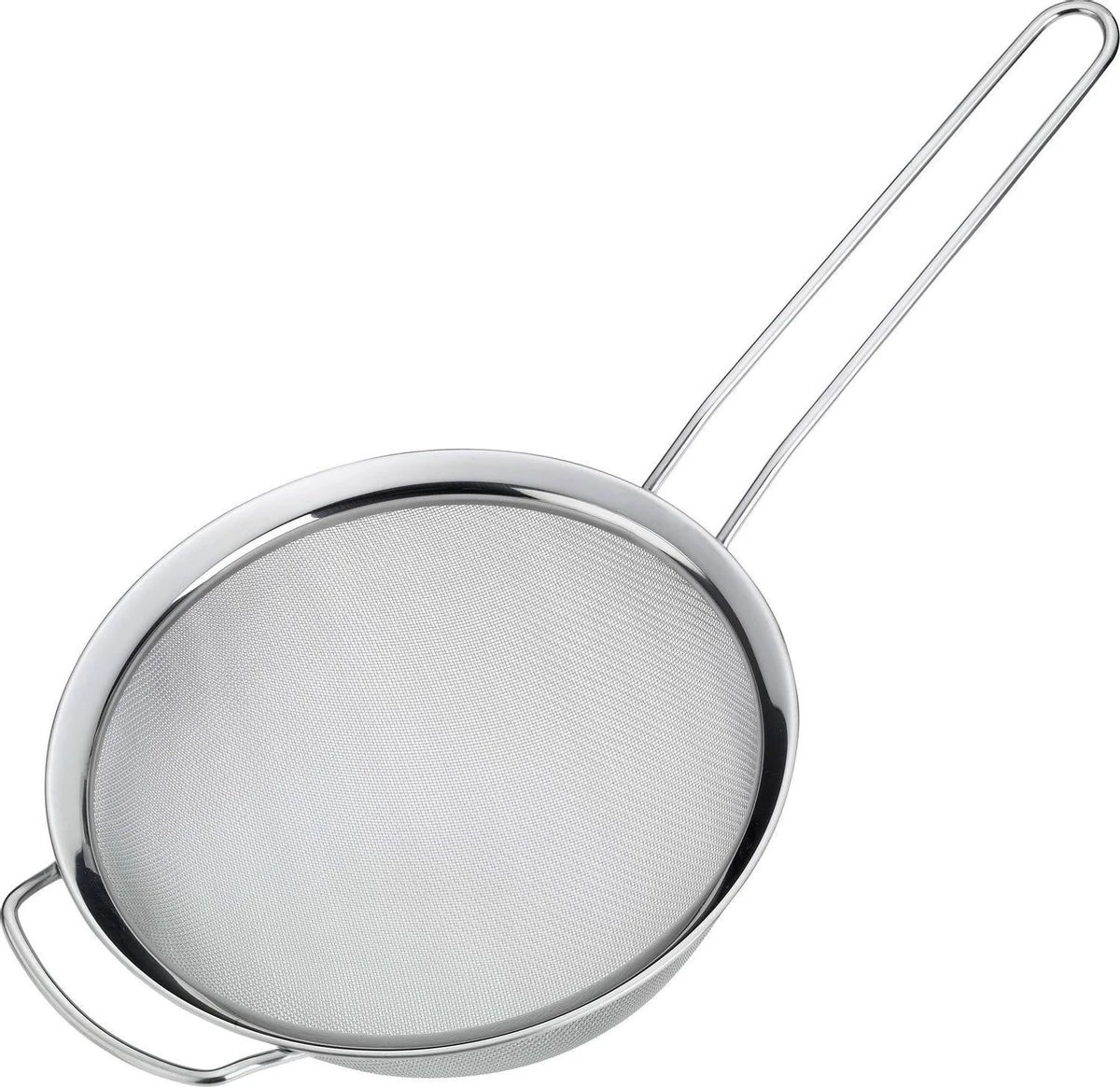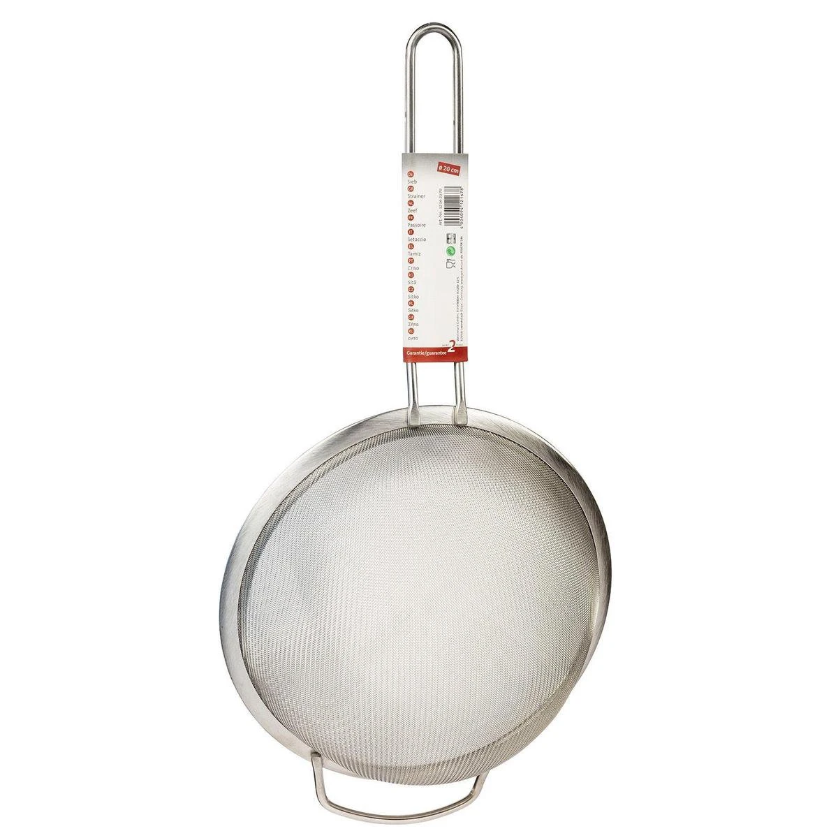 Deze grote zeef Picante heeft een doorsnede van 20 cm en heeft een extra brede rand. De lange steel en de greep zorgen er voor dat de zeef goed blijft liggen op schalen en pannen tijdens het passeren of zeven. De zeef is vervaardigd uit RVS.