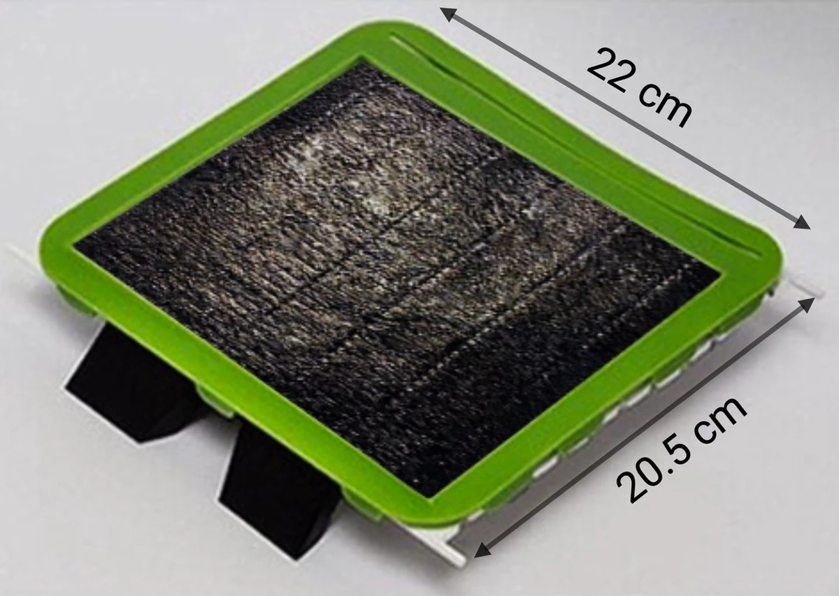 - Leg een zeewiervel op de witte mat en leg het trainingsframe eroverheen